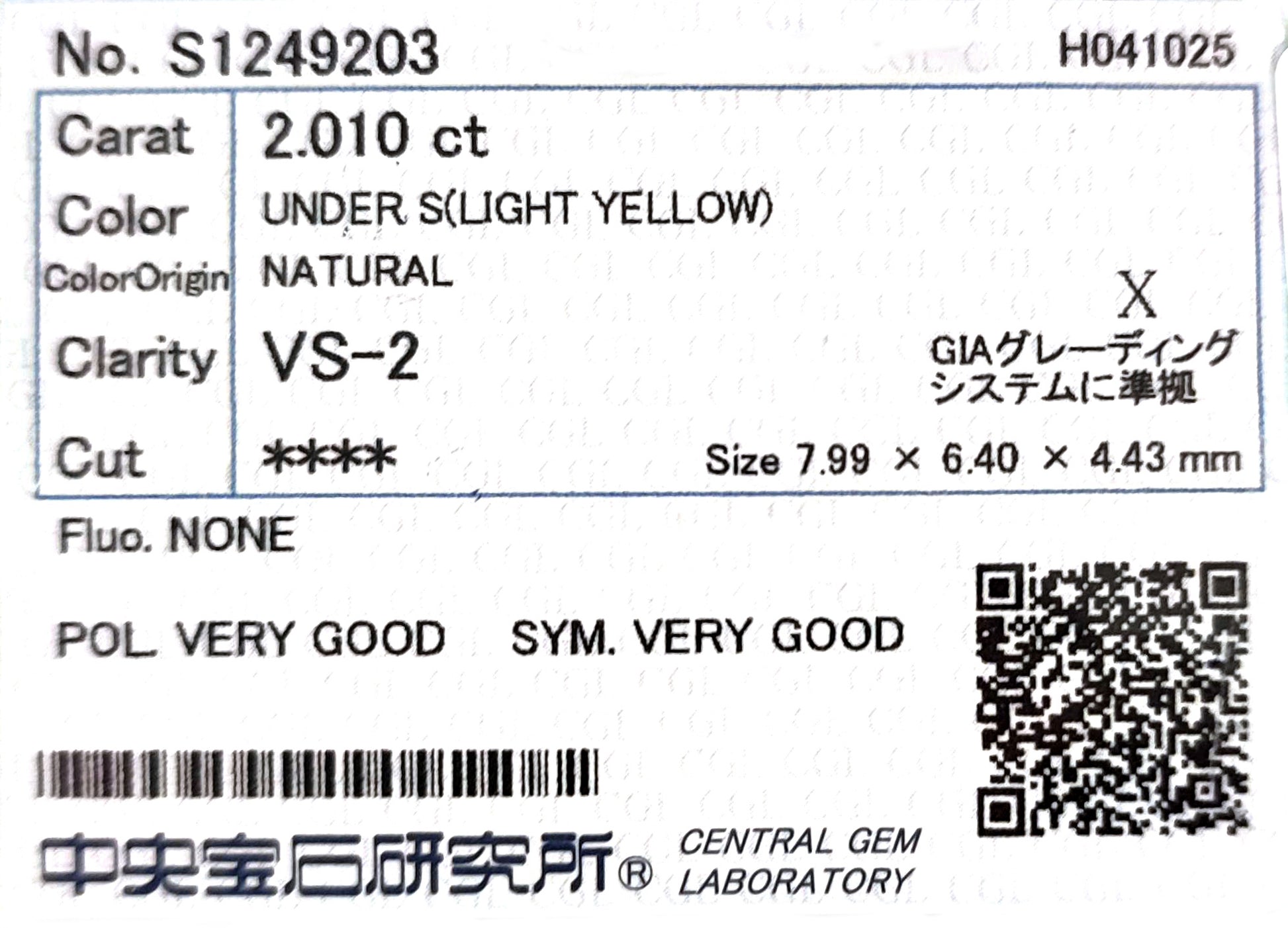 18K White Gold Cushion Cut Yellow Diamond Ring 2.77ct (Center: 2.01ct) S Color VS2 CGL Certified (Size: 13 JP)