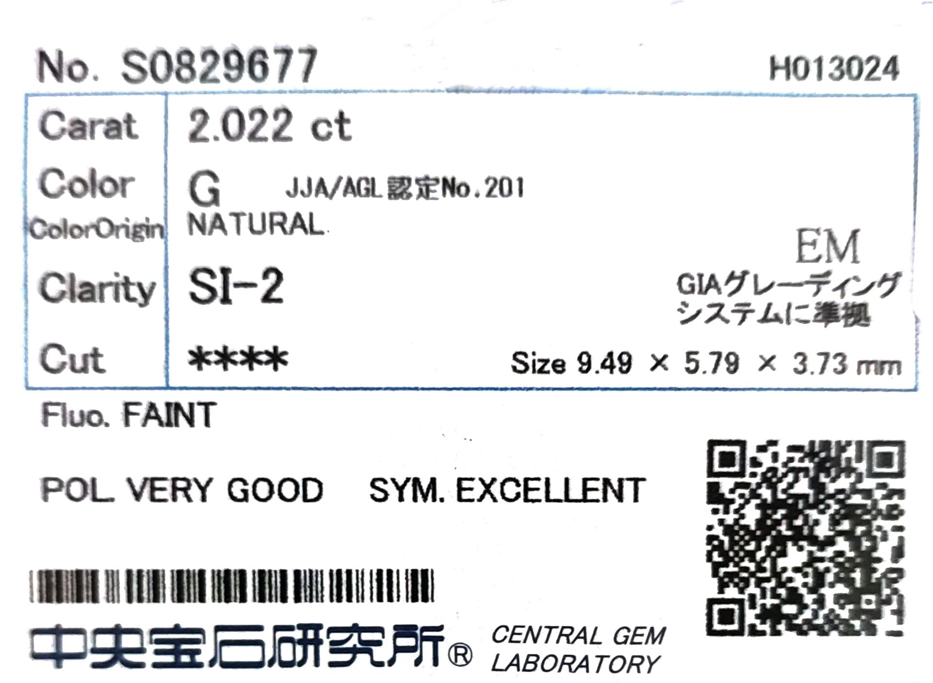 A bold and elegant ring featuring a 2.022ct emerald cut diamond at its center.