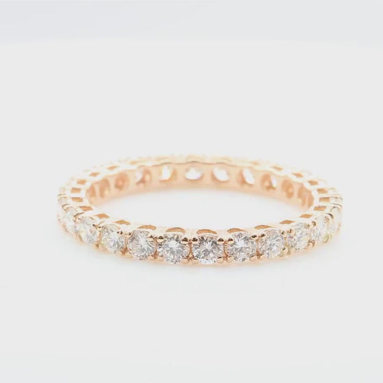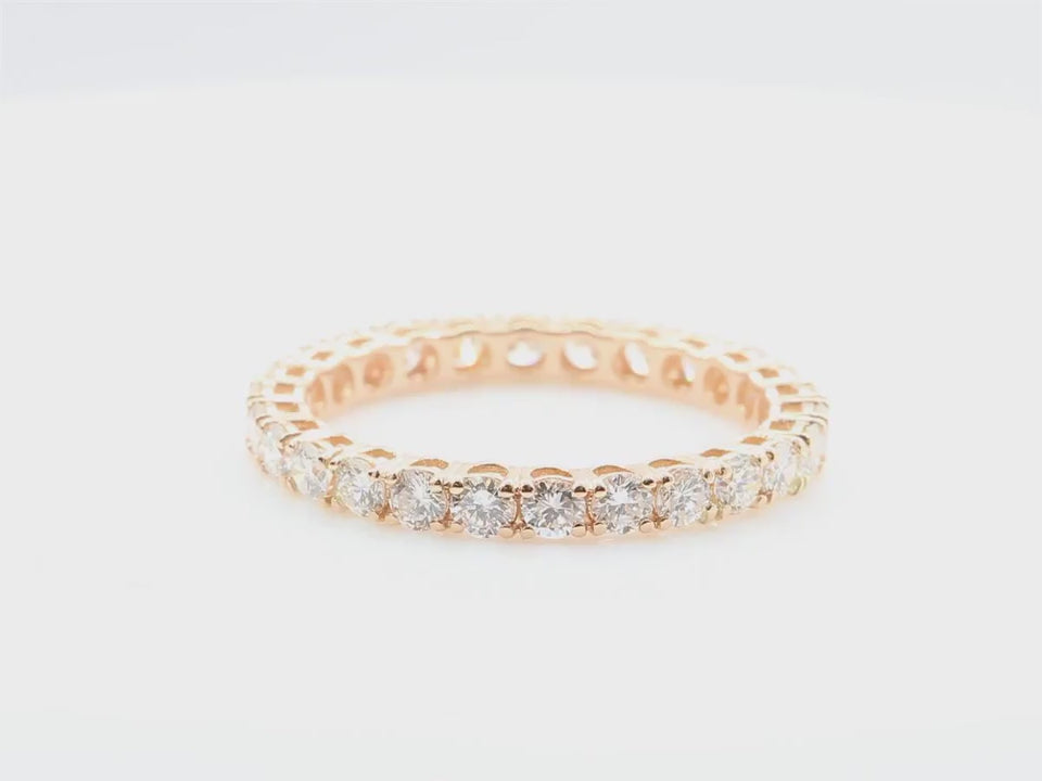 This exquisite full eternity ring features a total of 1.12 carats of dazzling round brilliant-cut diamonds, expertly set in luxurious 18K pink gold.