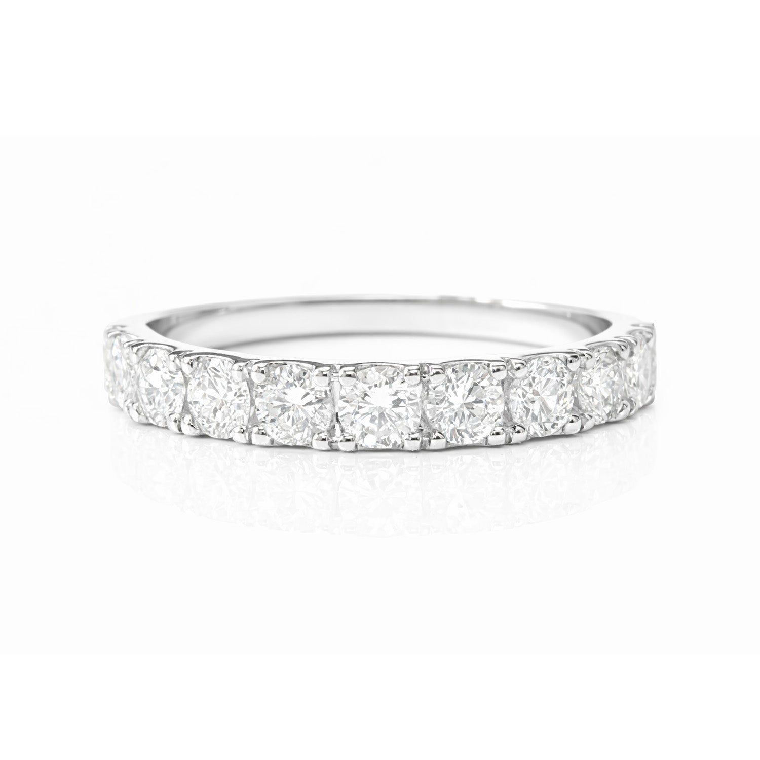 総0.61カラット、10石のラウンドブリリアントカットダイヤモンドを贅沢にセッティングした、上質な18Kホワイトゴールド製ハーフエタニティリングです。