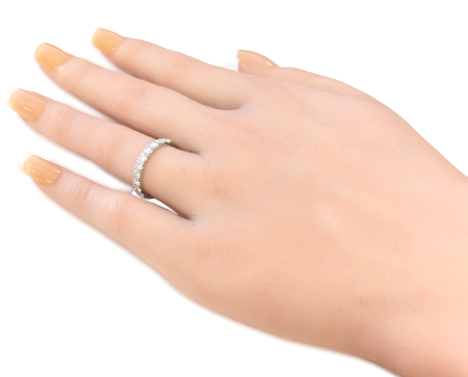 ひとつひとつのダイヤが美しく並び、指元に途切れない輝きを添えます。