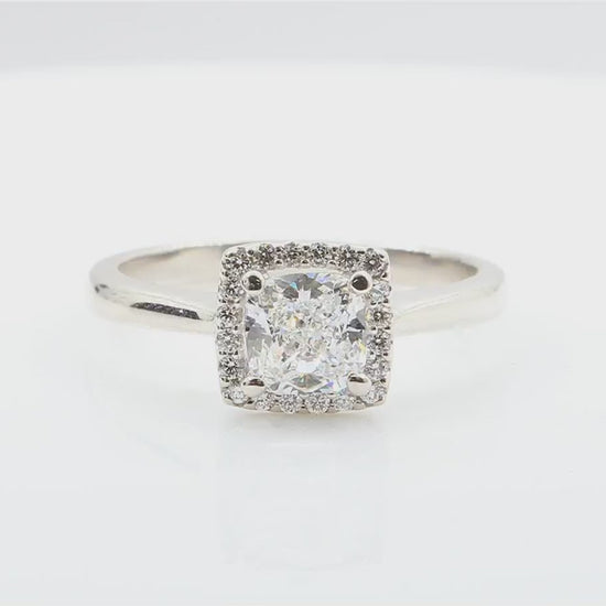 総1.12カラットのクッションカットダイヤモンドを主役にした、華やかで洗練されたダイヤモンドリングです。