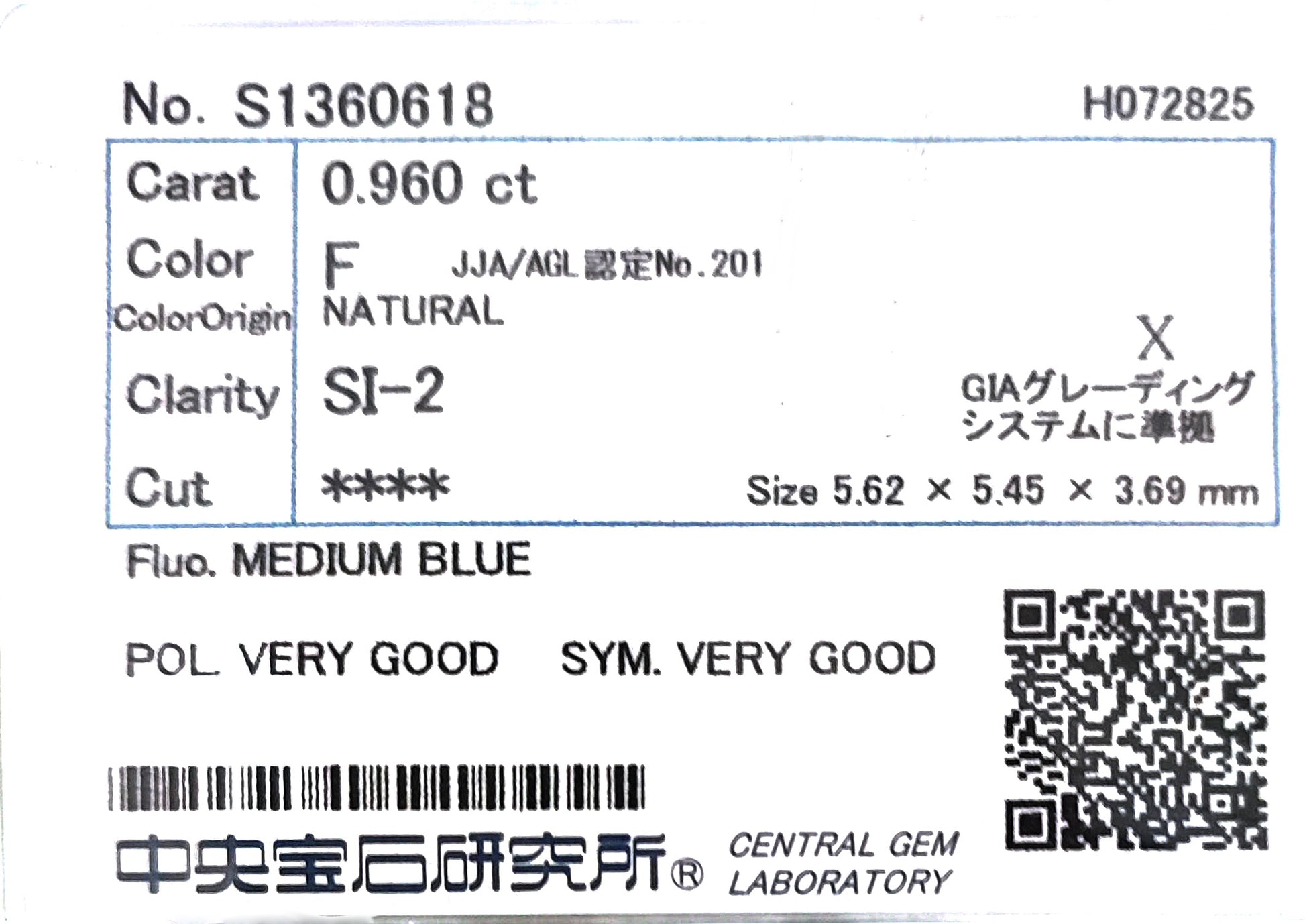 Fカラー、SI2クラリティのダイヤモンドはCGL鑑定書付きで、18金ホワイトゴールドの枠にセッティングされ、洗練された印象を与えます。