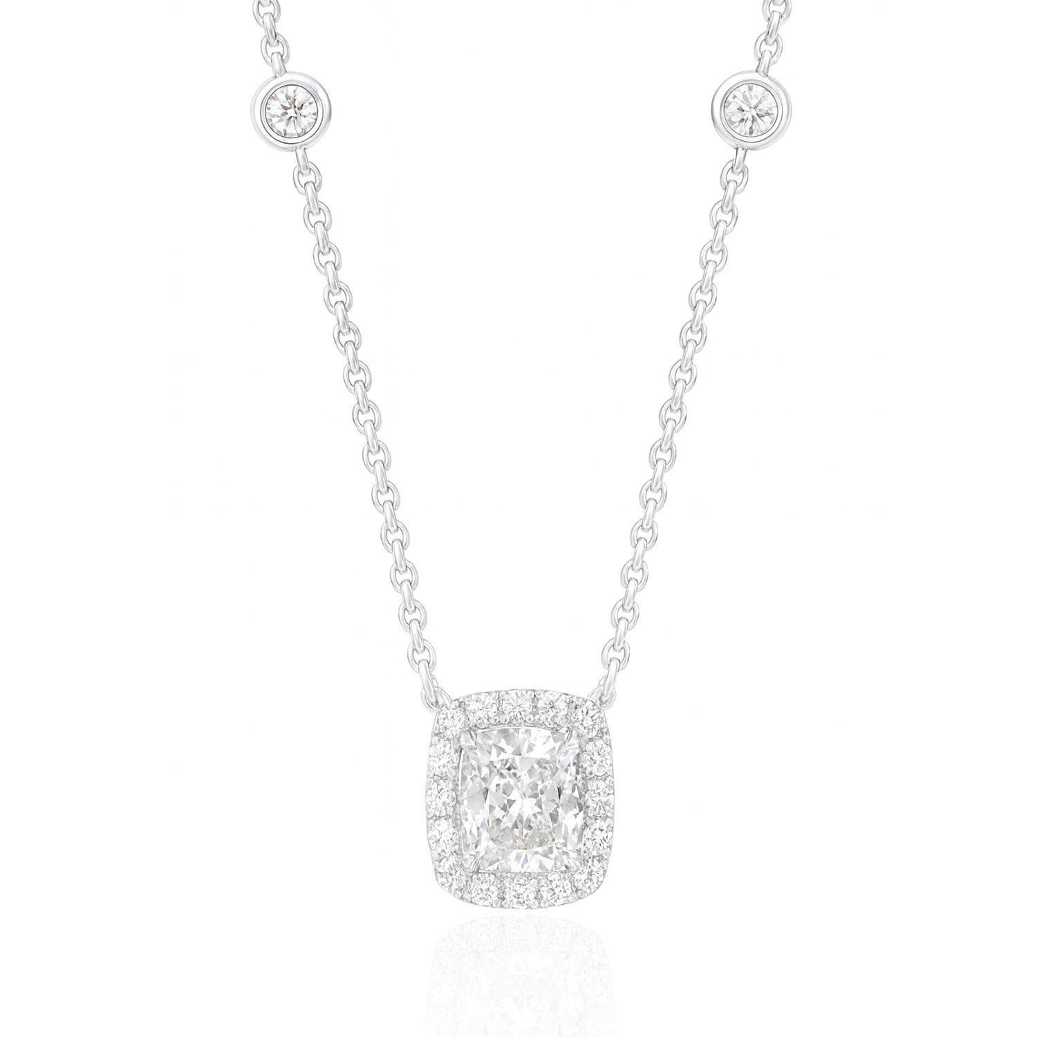 日常にさりげない華やかさを添えるクッションカットダイヤモンドネックレス。