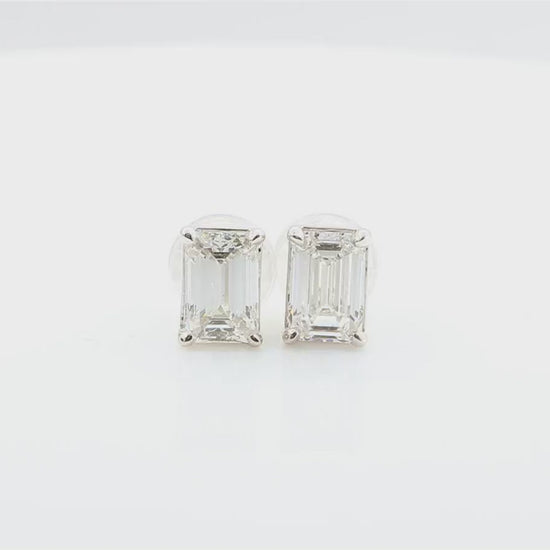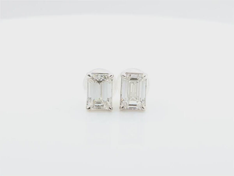 総2.02カラットの美しいエメラルドカットダイヤモンドをあしらった、18Kホワイトゴールド製スタッドピアスです。