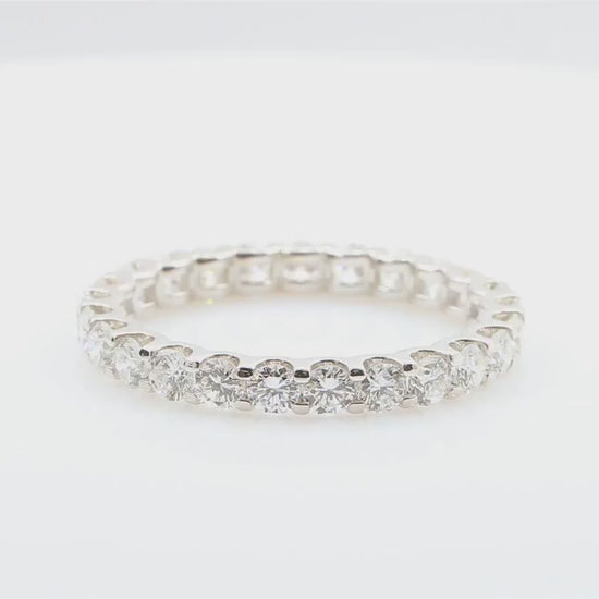 総1.23カラットのラウンドブリリアントダイヤモンドをあしらった、上質な18Kホワイトゴールド製エタニティリングです。