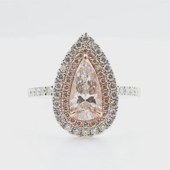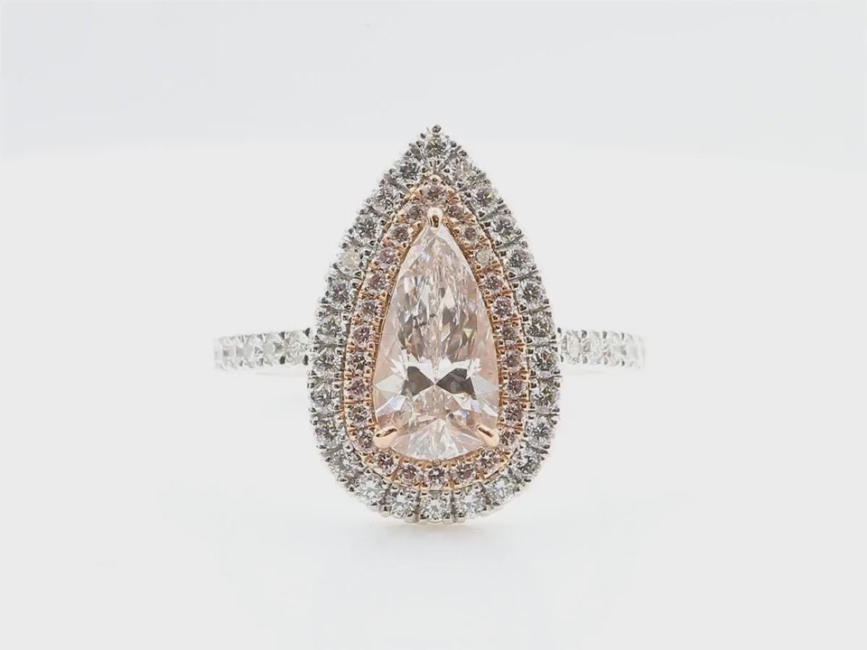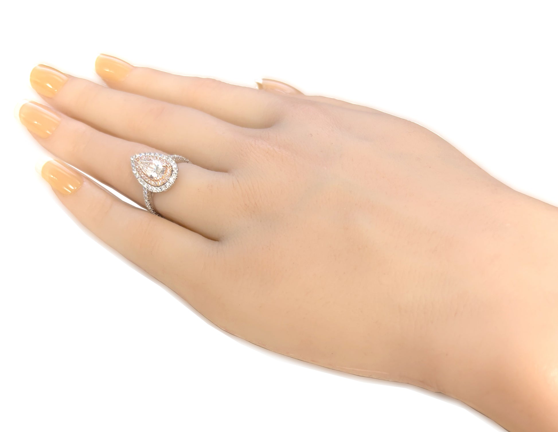 Jカラーにグレーディングされたペアシェイプダイヤモンドを主石に使用した、上品で存在感のあるダイヤモンドリングです。