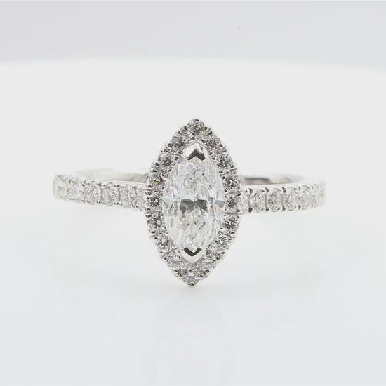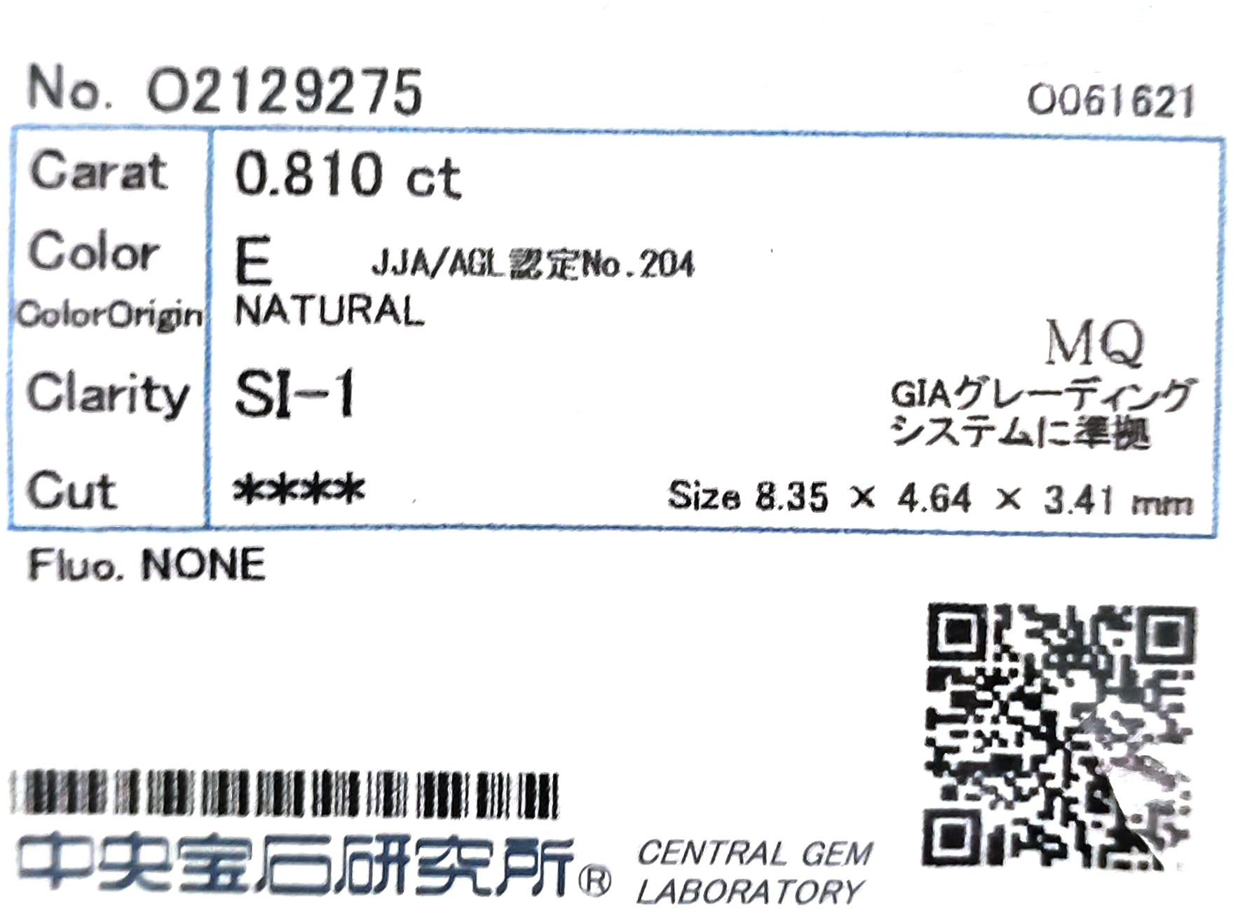 センターには、CGL鑑定付きの0.810カラット、Eカラー・SI1クラリティのマーキスカットダイヤモンドを使用。