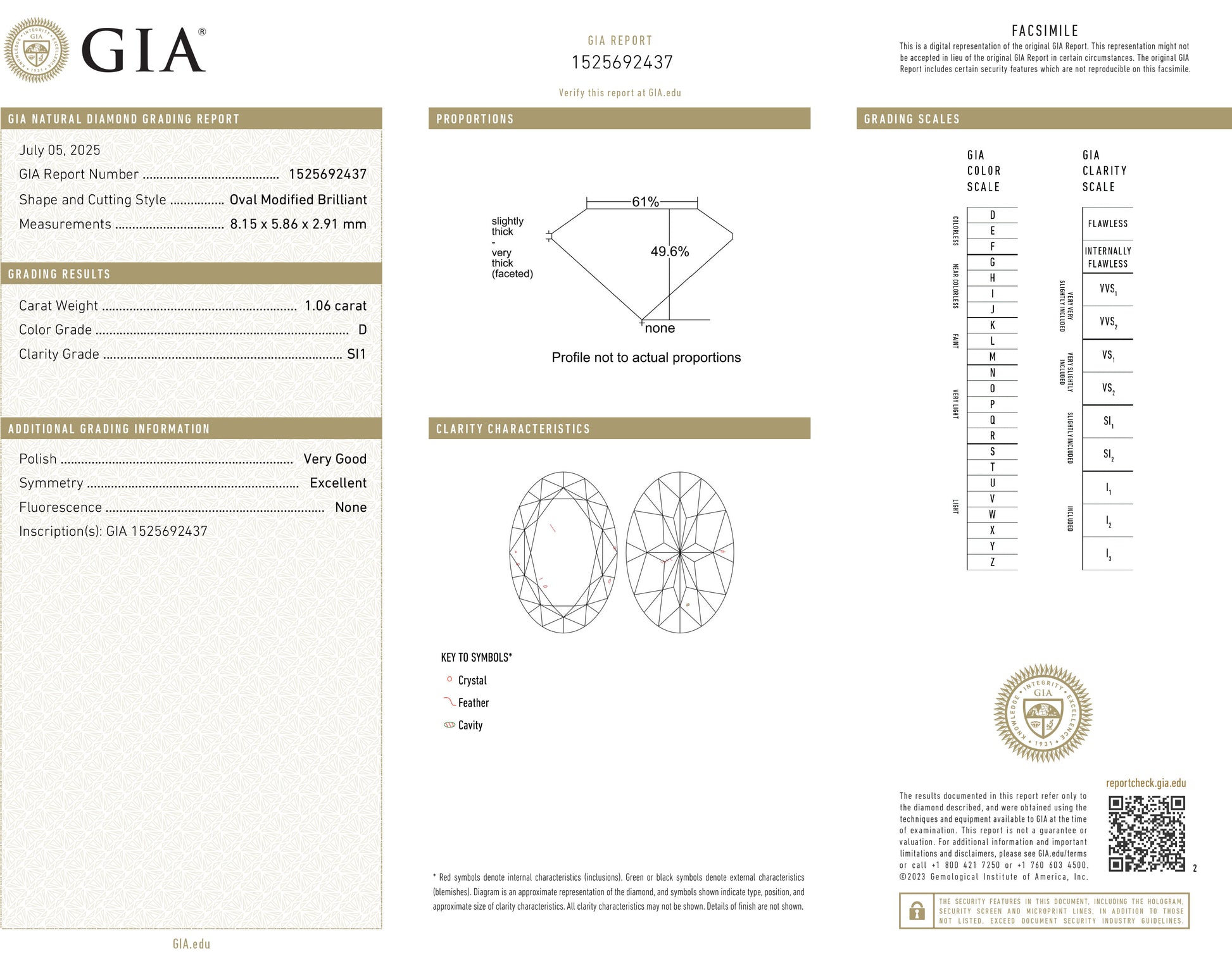 GIA鑑定付きで、Dカラー・SI1クラリティという優れた評価を持ち、透明感のある美しい輝きを放ちます。