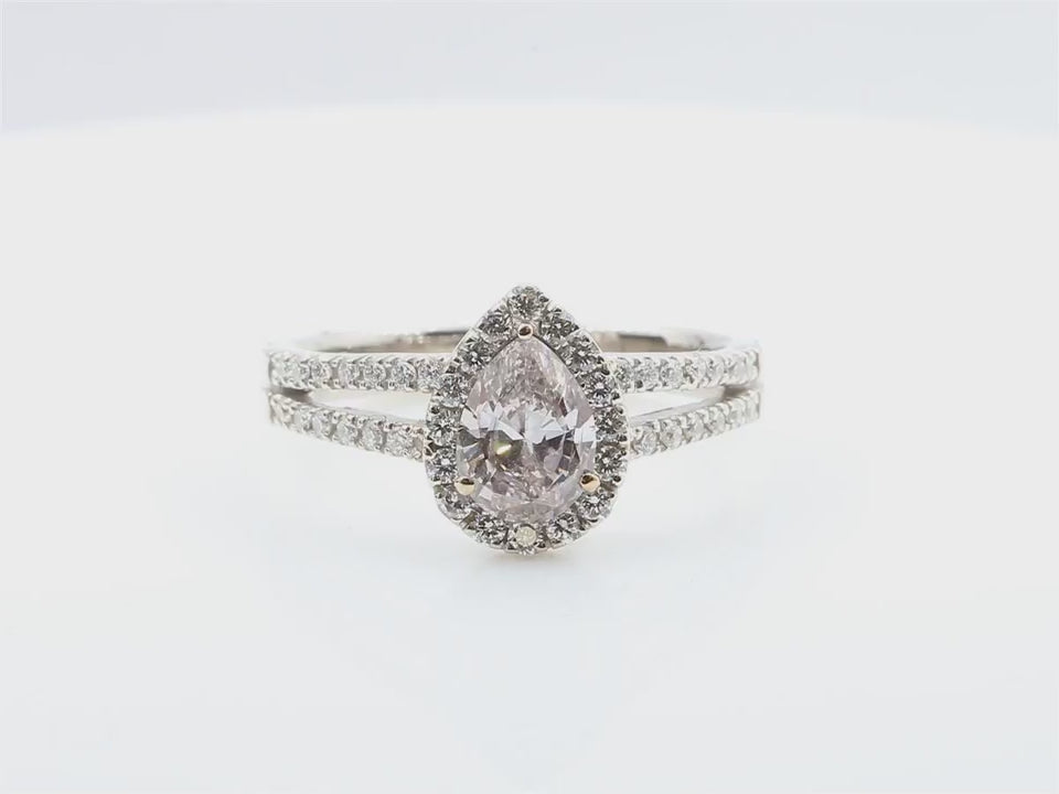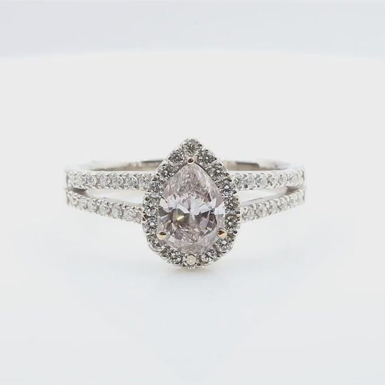 やわらかなピンクカラーが魅力のペアシェイプ天然ダイヤモンドリング。