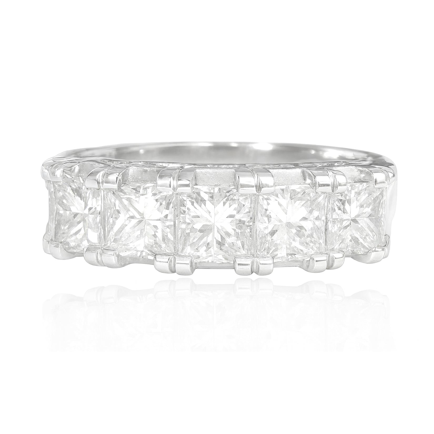 5石のプリンセスカットダイヤモンド(合計1.5カラット)が整然と並ぶ、洗練された印象のバンドリング。