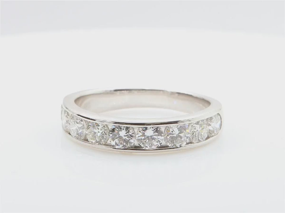 総1.42カラット、9石のラウンドブリリアントダイヤモンドを贅沢にあしらった、上質な18Kホワイトゴールド製チャンネルセッティングリングです。