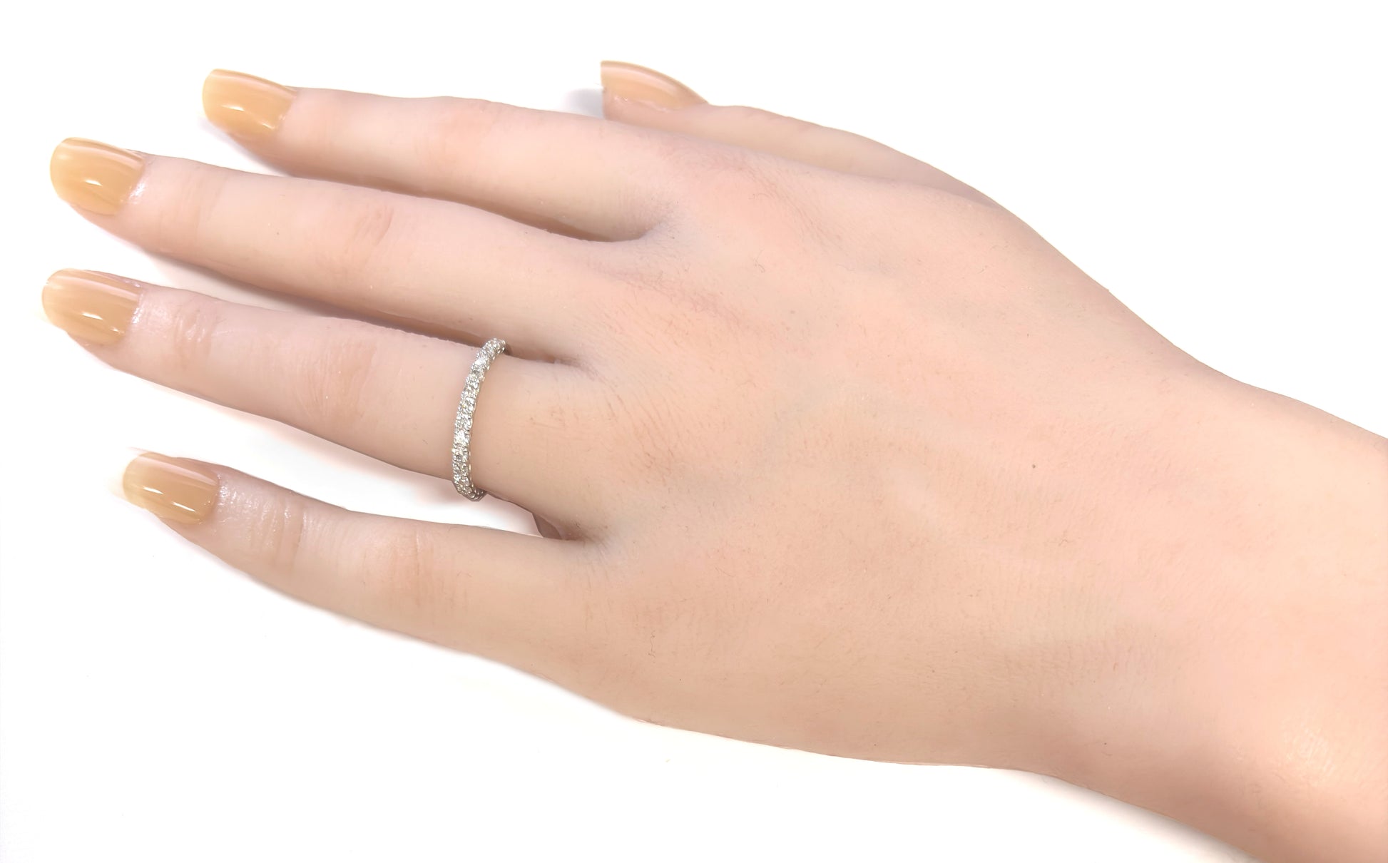 繊細なラウンドブリリアントカットのダイヤモンドを、PT900プラチナに途切れることなくセッティングしたエタニティリングです。