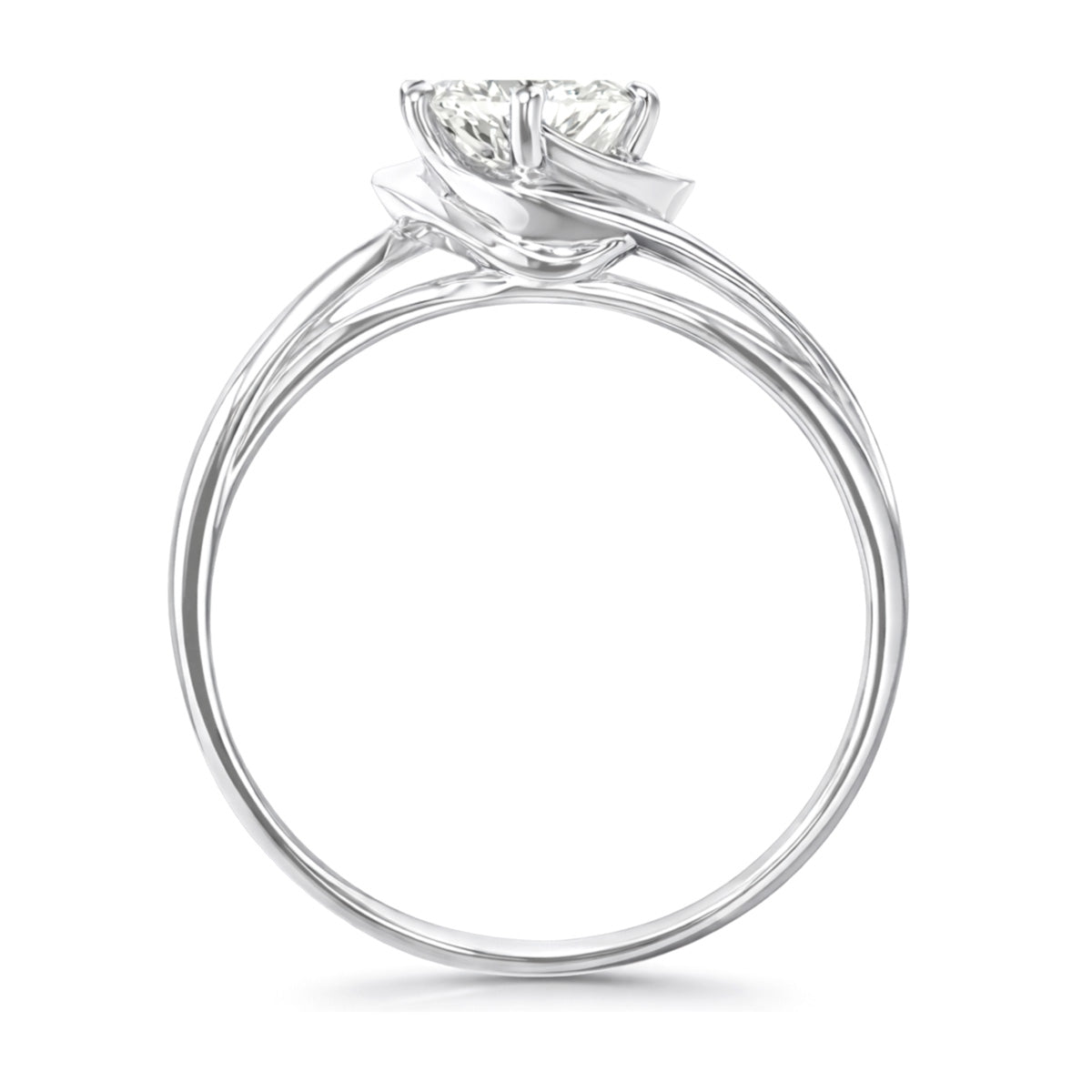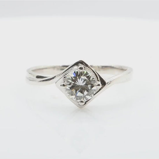 総0.666カラットのラウンドブリリアントカットダイヤモンドを、18Kホワイトゴールドのスタイリッシュなスクエア風セッティングに収めたエレガントなリングです。