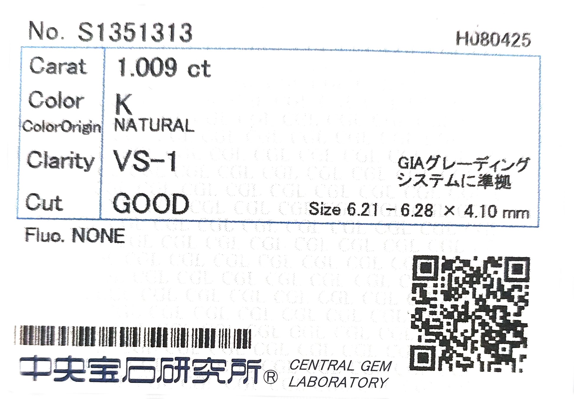 CGL鑑定付きで品質も確かです。