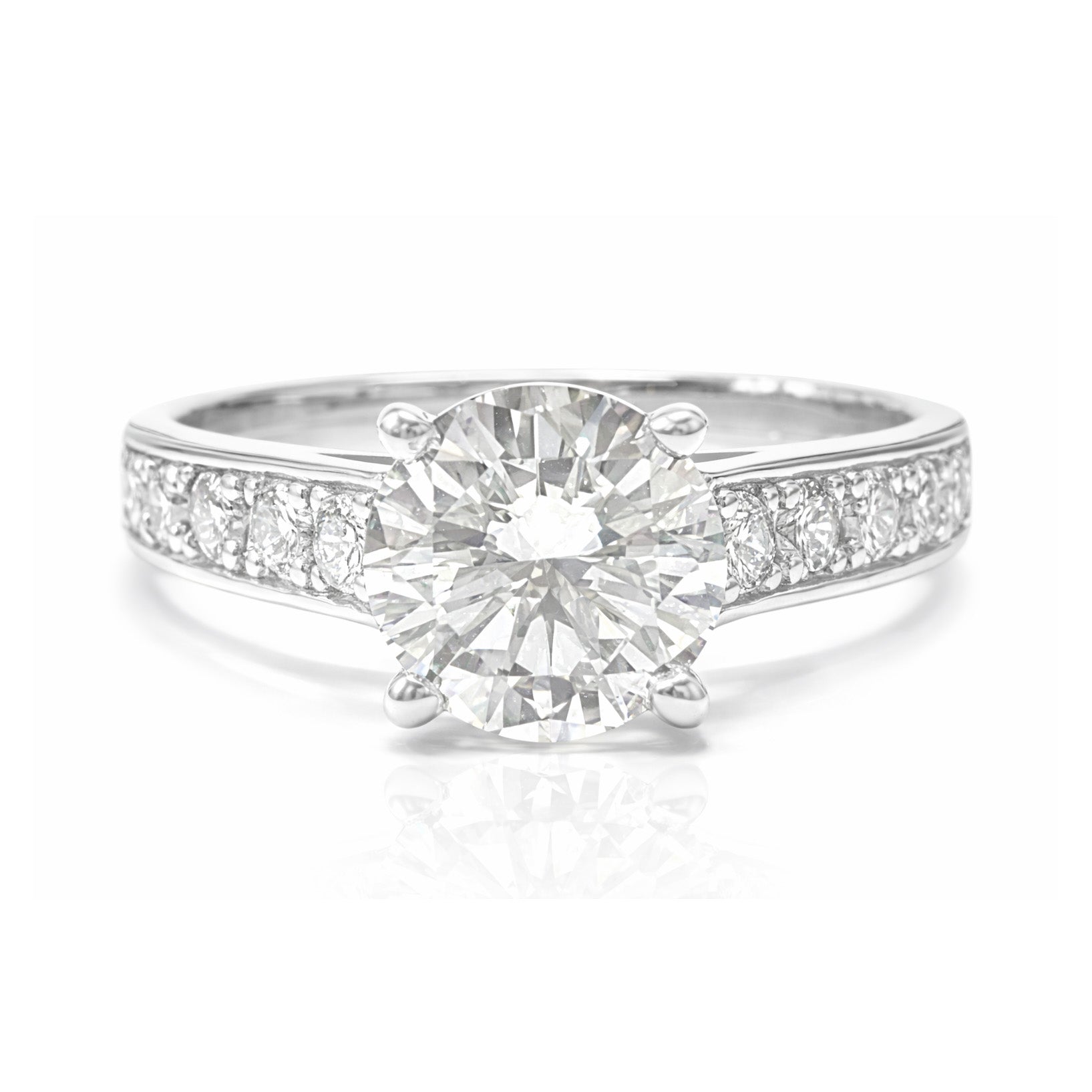 総1.352カラットのラウンドブリリアントカットダイヤモンドを主役にした、上質で洗練されたダイヤモンドリングです。