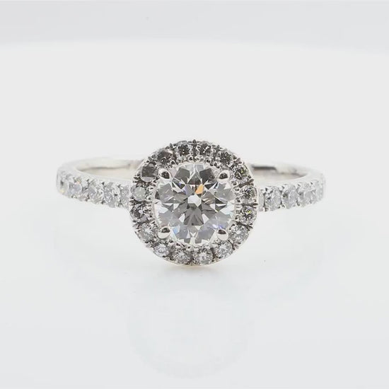 リングのアーム部分にはパヴェダイヤが配され、センターを囲むハローが華やかさを演出。