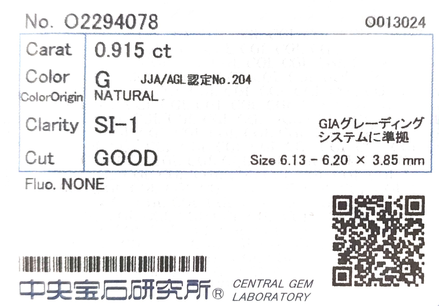18KWG ラウンドブリリアントカット 1.215ct(センターストーン 0.915ct)Gカラー SI1 CGL鑑定 天然ダイヤモンドリング(サイズ:13号)